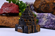 Marvelous Shree Yantra made from Tiger Eye Stone, weighing between 101 and 110 grams, in charming Tiger Eye Stone, renowned for its captivating golden-brown hues, enhances the sacred geometry of the Shree Yantra, resulting in a unique energy tool that seamlessly combines aesthetic beauty with divine energy. Our Tiger Eye Shree Yantra is a revered yantra that has the power to attract abundance, prosperity and wealth into your life. The Tiger Eye Stone enhances the energy of the yantra, fostering mental clarity, courage, and perception.